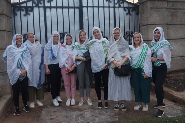 Vandaag vertrokken we om 6u30 in het hotel om naar de misviering te gaan. Deze begon om 7 uur. Om naar de kerk te gaan kochten we gisteren sjaaltjes ‘netela’ op de markt.